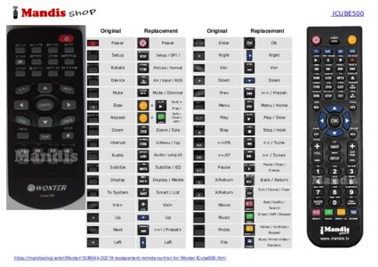 Below, we will show you the correspondence between each button on the original remote control and the button that performs the same function on the replacement remote control. In some cases, you may need to press the SHIFT key before pressing another button to perform certain actions. These additional functions are often not widely used and are included to facilitate understanding of the replacement remote control, or because the original remote control has more buttons than its equivalent.