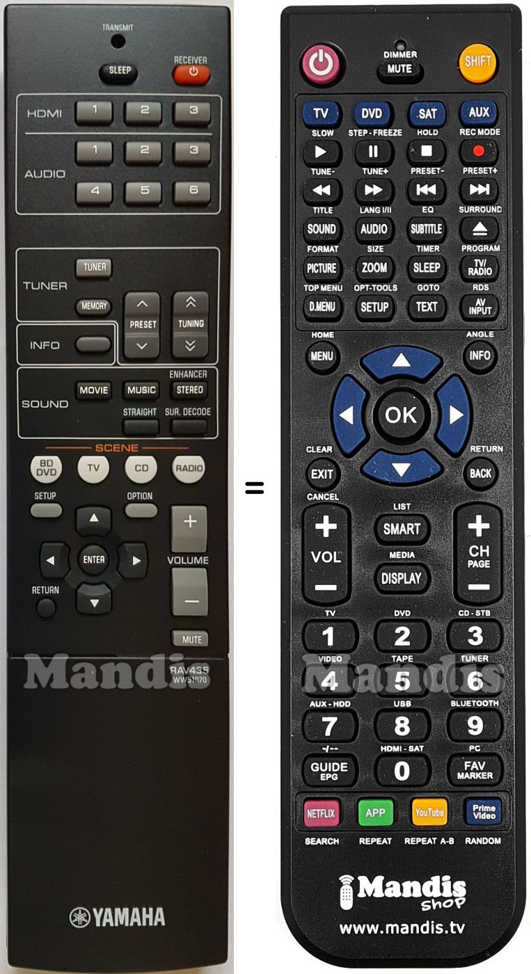 Home > Brands > Remote controls Yamaha > Remote control for YAMAHA RAV435 (WW510700)