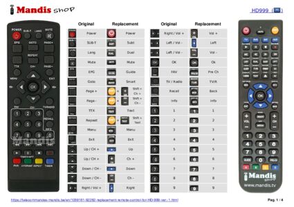 This remote control fully replaces your HD-999 (ver. 2) and offers all the functions of the original.