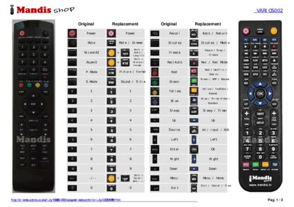 Below, we will show you the correspondence between each button on the original remote control and the button that performs the same function on the replacement remote control. In some cases, you may need to press the SHIFT key before pressing another button to perform certain actions. These additional functions are often not widely used and are included to facilitate understanding of the replacement remote control, or because the original remote control has more buttons than its equivalent.